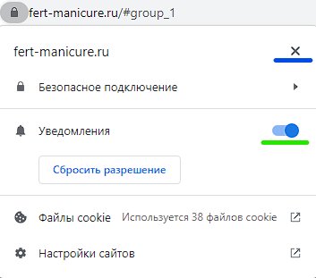 Если вы нажали кнопку "Блокировать" в всплывшем окне браузера, то нажмите на значек замка сбоку в адресном поле, как показано ниже